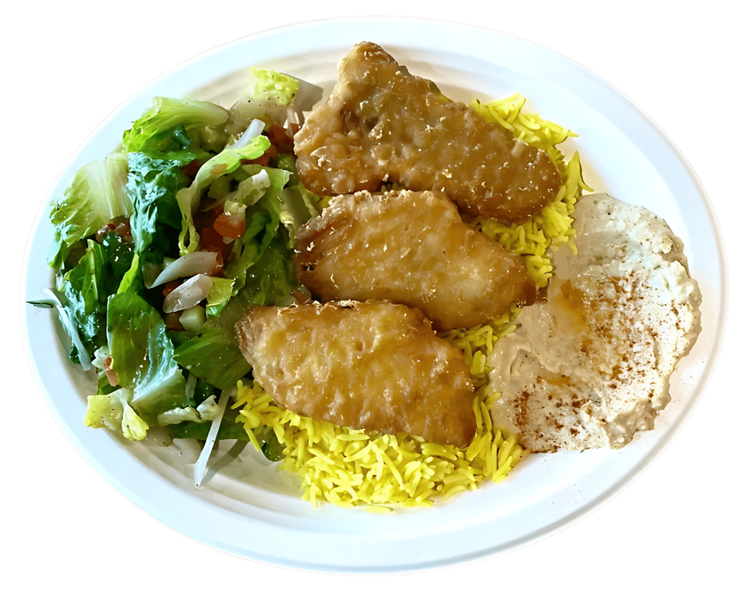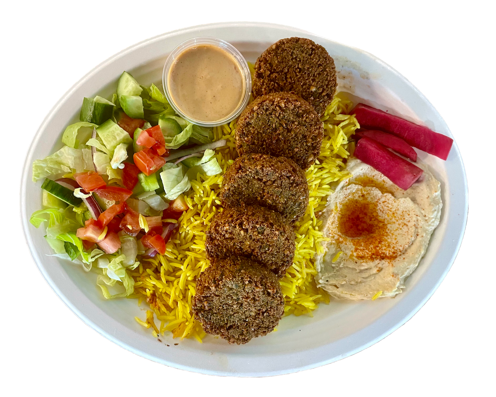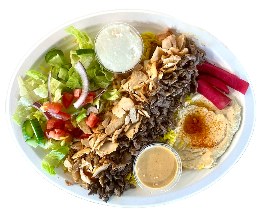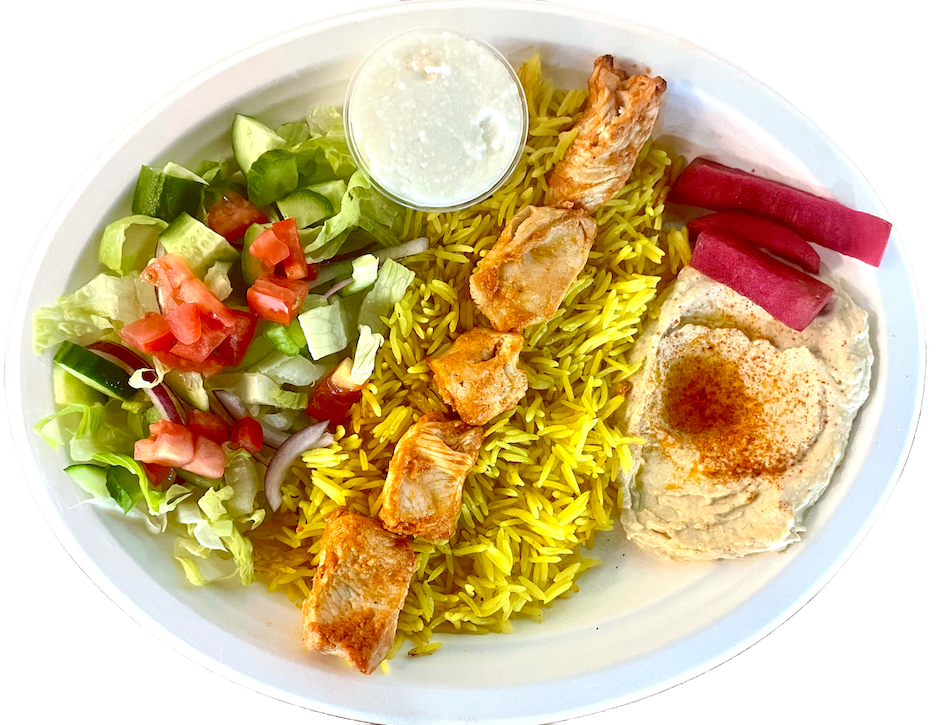 KABOB FOR ALL Our Menu. Main Plates Chicken Kabob PlateGrilled marinated chicken Beef Kabob PlateGrilled marinated beef kabob KAFTA Kabob PlateGrilled seasoned ground beef kabob with herbs and spices Chicken SHAWARMA PlateMarinated, flame broiled chicken Beef Shawarma PlateMarinated, flame broiled tri-tip Shawarma Mix PlateMarinated, flame broiled chicken and beef shawarma Gyro PlateThinly pre-sliced mix of beef and lamb meat Falafel PlateDeep fried balls of chickpea, fava beans, herbs and spices Cod Fish PlateBatter Cod Fish Burgers and Wings Cheeseburger ComboTopped with lettuce, tomato, onion, pickles and thousand island. Includes fries and a drink. Grilled Chicken ComboTopped with lettuce, tomato, onion, pickles and thousand island. Includes fries and a drink. Black Bean Burger ComboTopped with lettuce, tomato, onion, pickles and thousand island. Includes fries and a drink. Cali ComboTopped with lettuce, tomato, onion, pickles, avocado and spicy tahini. Includes fries and drink. Western ComboTopped with lettuce, tomato, onion, pickles, onion ring and BBQ sauce. Includes fries and a drink. Feta ComboTopped with lettuce, cucumber, tomato, onion, feta cheese and Tzatziki. Includes fries and a drink. Chicken Wings ComboIncludes 6 pieces. Spicy Garlic Chicken WingsIncludes 6 pieces. BBQ Chicken WingsIncludes 6 pieces. Wraps Chicken Kabob WrapGrilled chicken kabob, tomato, pickles and garlic spread Falafel WrapFalafel, lettuce, tomato, pickles, turnips and tahini sauce Gyro WrapThinly pre-sliced mix of beef and lamb meat, lettuce, tomato, onion and tzatziki sauce Beef Shawarma WrapFlame broiled beef, tomato, onion, pickles and tahini sauce Chicken Shawarma WrapFlame broiled chicken, tomato, pickles and garlic spread Kafta Kabob WrapMarinated ground beef Kabob, tomato, onion, pickles and tahini sauce Beef Kabob WrapGrilled beef kabob, tomato, onion, pickles and tahini sauce Fried Cod Fish WrapFried cod fish, lettuce, tomato, onion and your choice of sauce Soups & Salads TabouliParsley, tomato, onion and cracked wheat tossed in lemon, olive oil and salt Fattouche SaladLettuce, tomato, onion, bell pepper, cucumber and pita chips tossed in fattouche dressing House SaladLettuce, tomato, onion and cucumber served with house dressing Greek SaladLettuce, tomato, onion, bell pepper, cucumber, Kalamata olives* and feta tossed in house dressing Lentil Soup Chicken Lemon Rice Soup * Kalamata olives have pits Loaded Shawarma Fries Cali Shawarma Burrito Cali Shawarma BurritoYour choice of shawarma, sauce and fries or rice served with avocado, tomato, onion, pickles and feta cheese wrapped in a tortilla. Family Platters Family Platter # 1Serves 3-4 people. Includes 2 chicken kabobs, 2 beef kabobs, 2 kafta kabobs, chicken shawarma, beef shawarma, 4 falafels, rice, hummus and pita bread Family Platter # 2Serves 4-6 people. Includes 3 chicken kabobs, 3 beef kabobs, 3 kafta kabobs, chicken shawarma, beef shawarma, 6 falafels, rice, salad, hummus and pita bread Family Platter # 3Serves 6-8 people. Includes 4 chicken kabobs, 4 beef kabobs, 4 kafta kabobs, chicken shawarma, beef shawarma, 8 falafels, rice, salad, hummus and pita bread SANDWICH PLATTERIncludes 4 sandwiches in your choice of: gyro, chicken shawarma, beef shawarma, chicken kabob, kafta kabob or falafel Desserts Banana, Chocolate and Peanut Butter Cheesecake Raspberry Swirl Cheesecake New York Style Cheesecake Oreo Cheesecake Carrot Cake Chocolate Wipeout Cake Lemon Leche Cake Red Velvet Cake Vanilla Bean Gelato Dark Chocolate Gelato Baklava Sauces & Sides Garlic Tahini Spicy Tahini Amba Tzatziki Hummus Baba Ghanoush Kafta Kabob Beef Kabob Falafel Gyro Chicken Kabob Chicken Shawarma Fries Beef Shawarma Rice Pita Bread Pita Bread Bag Pickles Onion Rings Kids Menu Chicken Nuggets Cheese Sticks Smoothies Mango Smoothie Strawberry Banana Caribbean Sorbet Milkshakes Banana Chocolate Oreo Peach Salted Caramel Strawberry Vanilla Doughnut Pomegranate Tahitian Lime and Mint Watermelon Rose Beverages Salted Caramel Cold Brew Vanilla Cold Brew Coffee Freshly Brewed Iced Tea (unsweetened) Freshly Brewed Iced Tea (flavored) Lemonade Vimto11 fl oz Coke20 or 32 oz Coke Zero20 or 32 oz Diet Coke20 or 32 oz Dr Pepper20 or 32 oz Sprite20 or 32 oz Bottled Water Beer & Wine Blue Moon Belgian White Coors Light Lost Coast IPA Lost Coast Hazy IPA Lost Coast Tangerine Strawberry Lager Abita Corona Light Corona Extra Corona Non-Alcoholic Corona Premier Firestone 805 Blonde Ale Miller Light Modelo Especial Pacifico House Wine Other Alcoholic Beverages Truly Twisted Tea White Claw Sabe